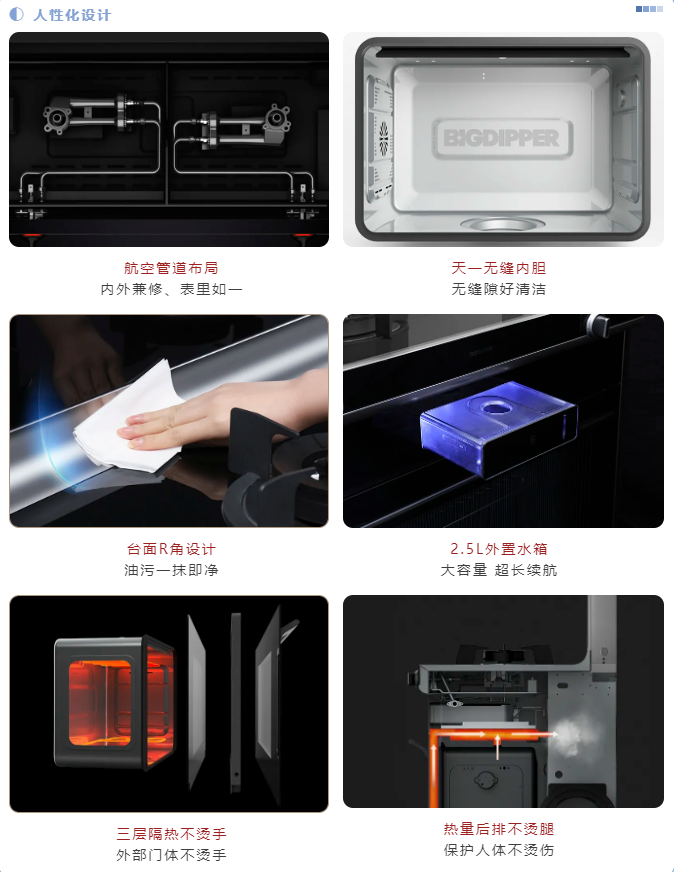 此外,特有120℃高溫蒸:雙重高溫蒸汽加熱,產生雙倍蒸汽濃度,加熱更高效,快速蒸透食材,展現純真本味。