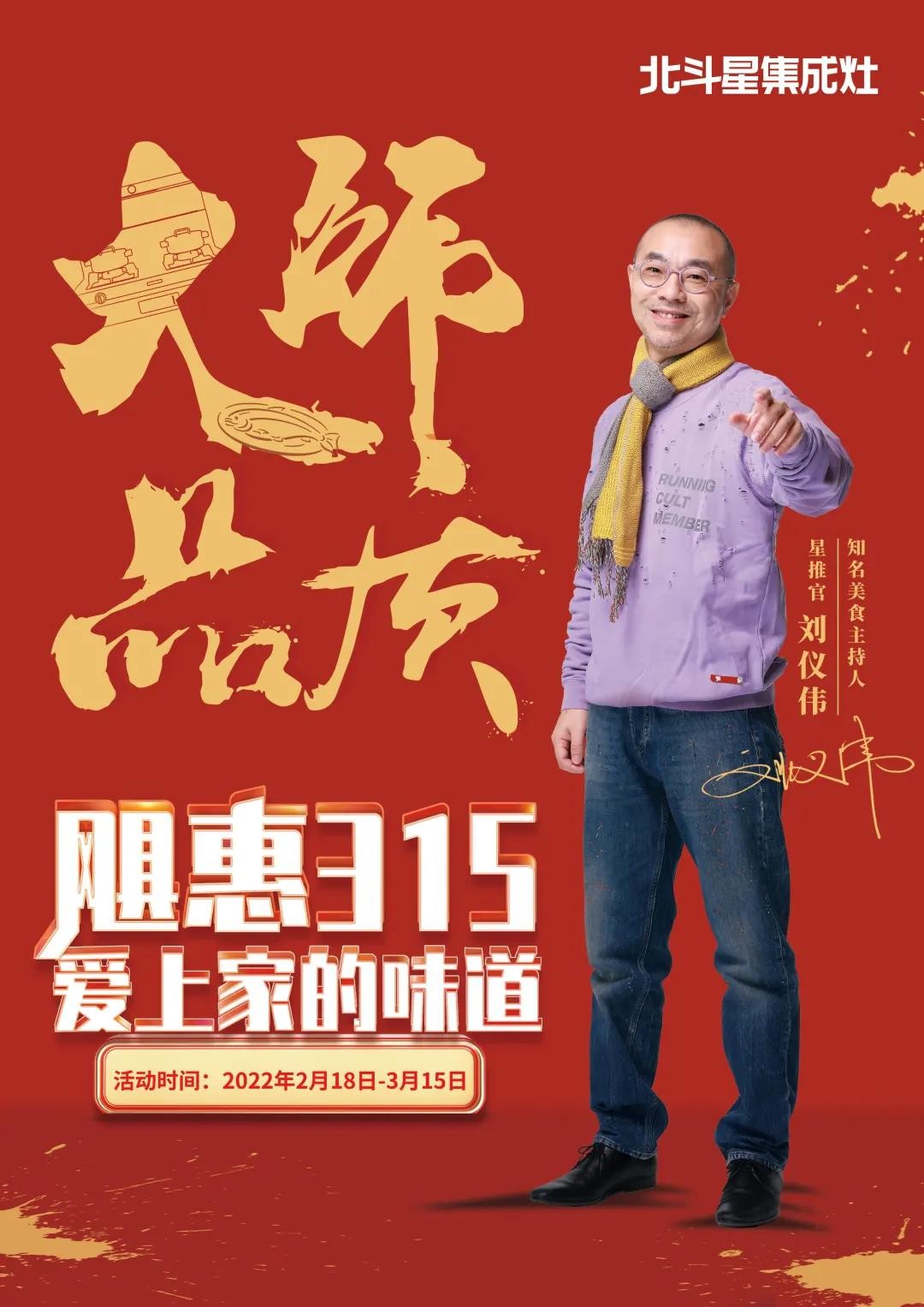 繼2021年攜手“國際鋼琴大師”郎朗作為品牌愛家形象大使后,北斗星再次特邀知名美食主持人劉儀偉為星推官,以強勢姿態沖擊市場,搶占行業流量高地。