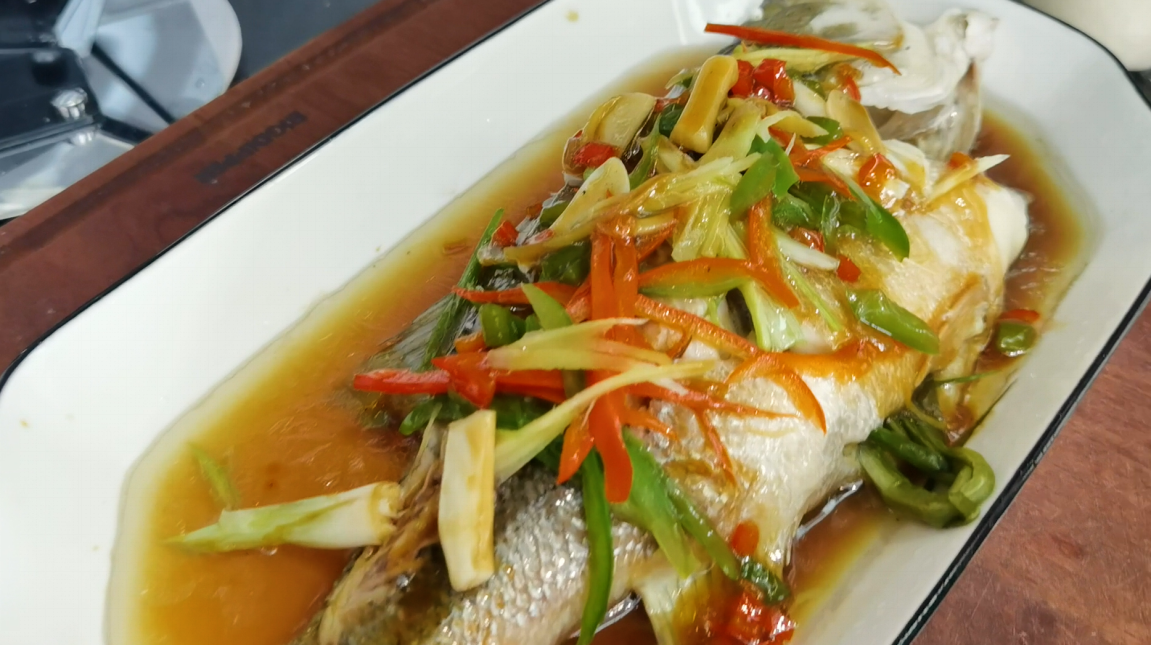 有了蒸粗糧的經驗后,想給自己增加些小難度,鱸魚試手,把料酒,煙,蔥,姜片,蒜把魚腌了十分鐘,調到到海鮮模式,坐等吃魚。