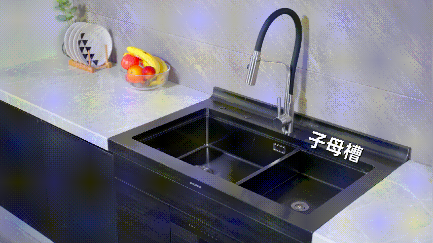 搭配可移動小槽、砧板、瀝水簾,打造集成美學,充分利用廚房空間,洗切備瀝一機搞定。