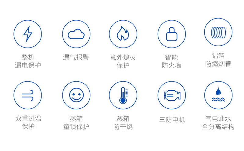 1、智能防火墻:集成灶內(nèi)置電子感應(yīng)防火墻,對(duì)高溫實(shí)行敏感探測(cè),當(dāng)探測(cè)到明火或溫度過高時(shí),就能立馬切斷電路。