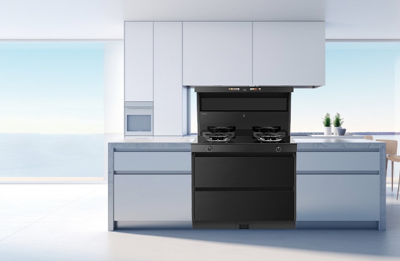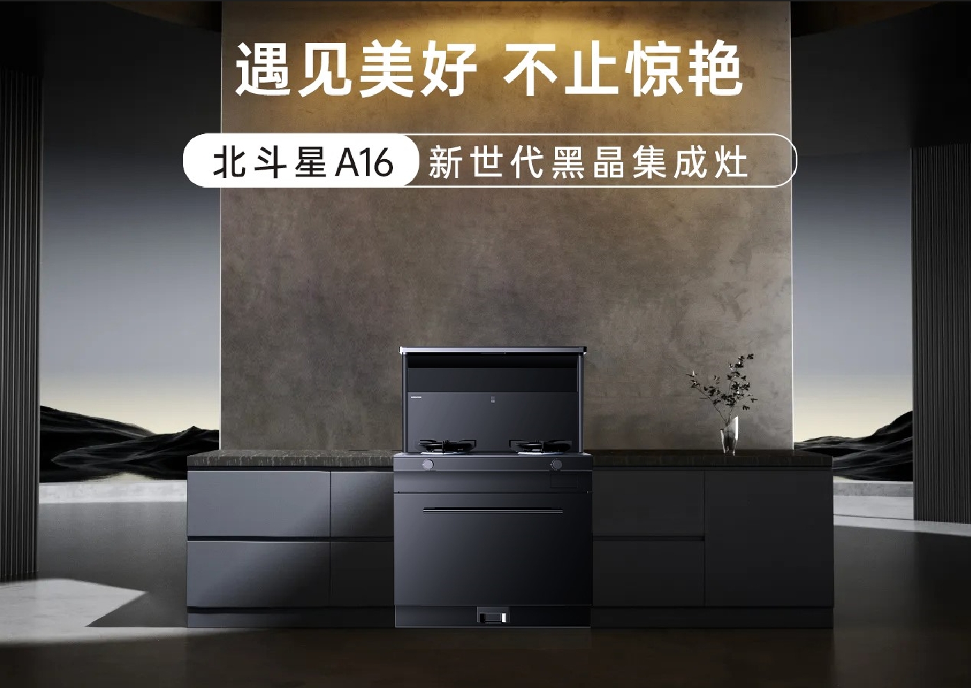 北斗星A16蒸烤炸一體集成灶,新世代全黑晶機身用極簡詮釋大美,百搭多樣廚房裝修風格,簡約中激發(fā)烹飪靈感。